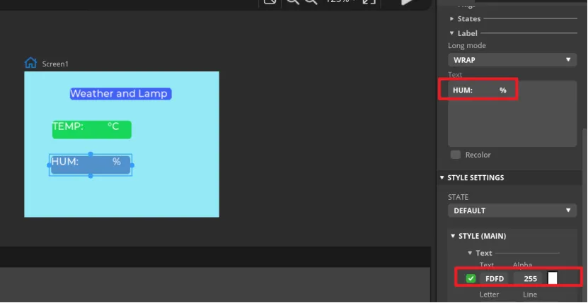 Add Label2 and Label3 as labels for temperature and humidity in the same way.