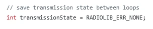 Finally, the global variable "transmissionState" is defined to store and transfer the status codes during the data packet transmission process, facilitating the program to determine whether the transmission was successful.