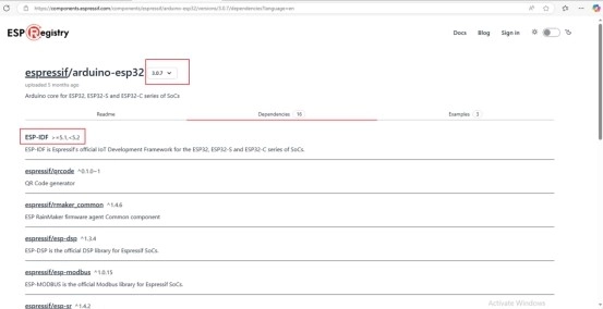 Note: The IDF version is 5.1.1, and the version of the Arduino component is 3.0.7.