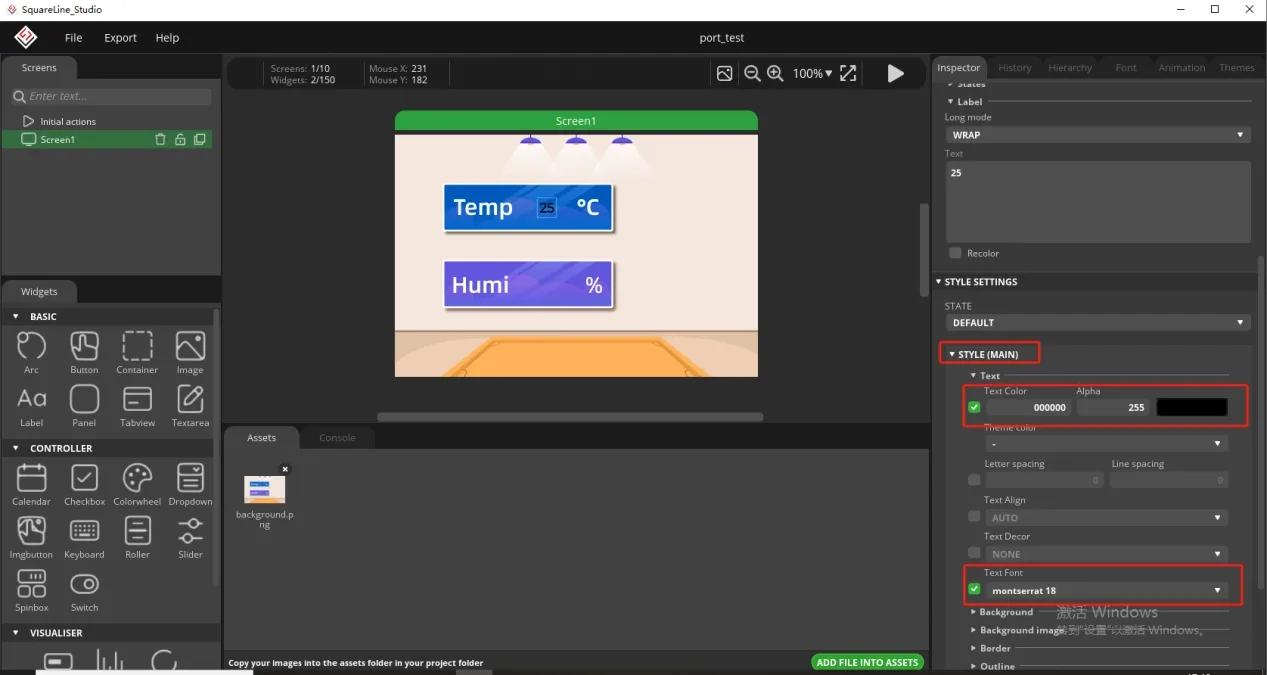 Since we need to display the temperature and humidity values on the screen, we need to add text in the two boxes for temperature and humidity.
