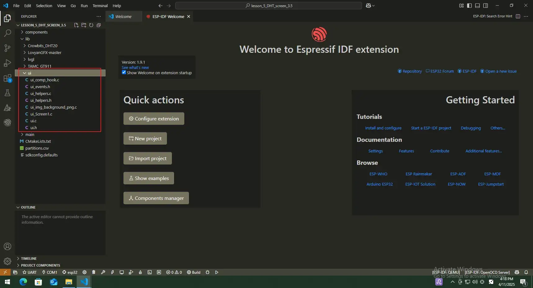 Then use VSCode to open the IDF project folder. Copy the generated .h and .c files into the corresponding folders of the project. (Here, I will use the code for the 3.5-inch version as an example.)