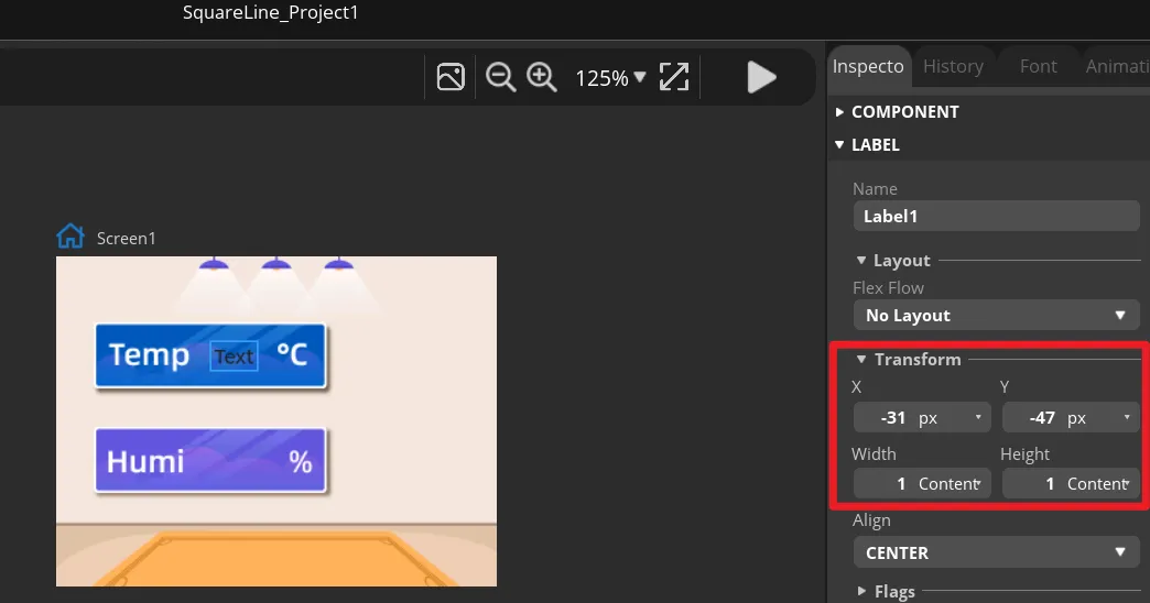 Add a Label2 to display the humidity value in the same way. You can also directly right-click the Label1 to duplicate it.