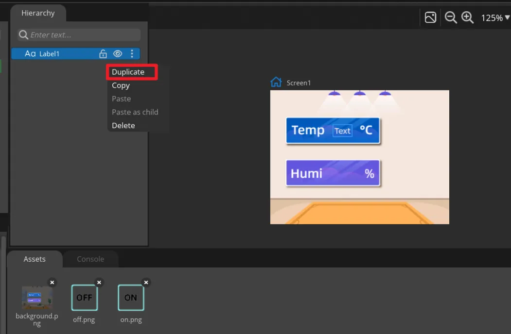 Add a Label2 to display the humidity value in the same way. You can also directly right-click the Label1 to duplicate it.