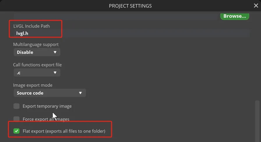 Tips: After selecting the flat export, the output files will be in the same folder, so that the output code does not need to modify the path in the program. If not, the output files will be classified and placed in different folders. The compiler may not be able to recognize different paths, which will cause some trouble. In this case, the user needs to modify it manually, so it is recommended to select all files to be output to the same folder.