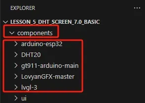 #include <lvgl.h>: Library for UI interaction#include <DHT20.h>: The library of temperature and humidity sensors#include <SPI.h>: Screen driven library.#include <Arduino.h>: This is the core Arduino header file. It must be included when using the Arduino framework.#include "LGFX_driver.h": This library handles the initialization and configuration of the display, including resolution, driver settings, and interface pins.#include "ui.h": is a custom header file that contain UI-related functions or definitions.