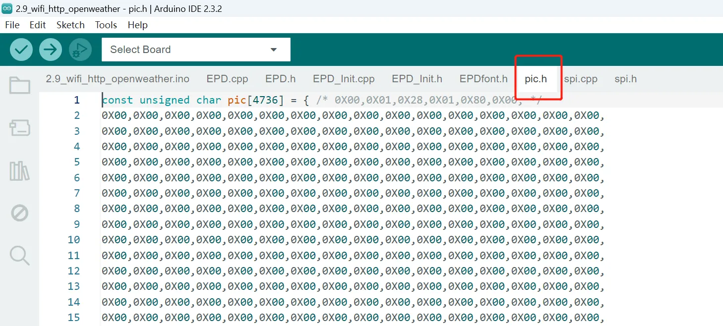 extern uint8_t ImageBW[ALLSCREEN_BYTES]; // Externally defined variable to store image data