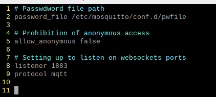 Go to the /etc/mosquitto/directory and use command sudo vim mosquitto. conf to open the configuration file