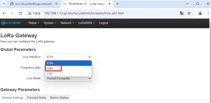 On the Luci interface, click "LoRaWAN" and navigate to the LoRa Gateway interface.