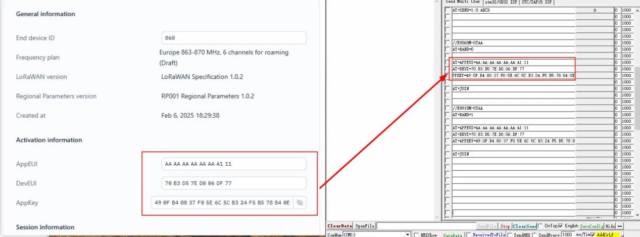 (2)Configuration steps for the node to access the single-channel gateway (send AT commands)