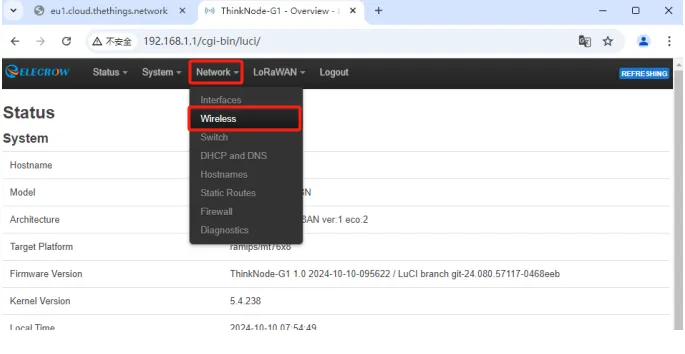 STEP4:Log in to the Luci page, and click Network - Wireless