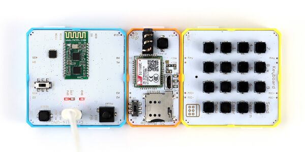 2. Connect the module to the D4 and D5 interface of the Crowbits-UNO board, and Crowbits-Key Board connect the MIC interface of the Crowbits-2G Module. As shown in the figure: