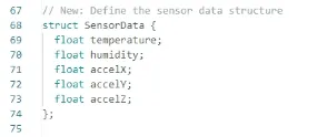 The structure defined here contains the values for temperature, humidity, and acceleration in three directions.