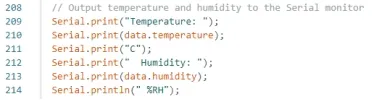 After retrieving the temperature and humidity values, you can print them to the serial monitor to check the values.