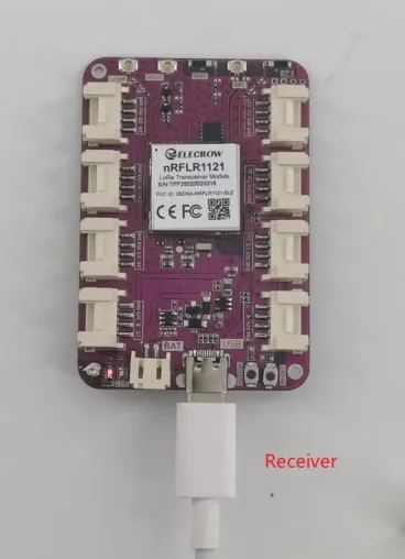 As shown in the figure below, we are using the nRFLR1121 module with each interface connected to a sensor. This setup allows us to collect data from each sensor and transmit the data to another nRFLR1121 module using LoRa technology. Finally, the received data can be viewed through the serial port.